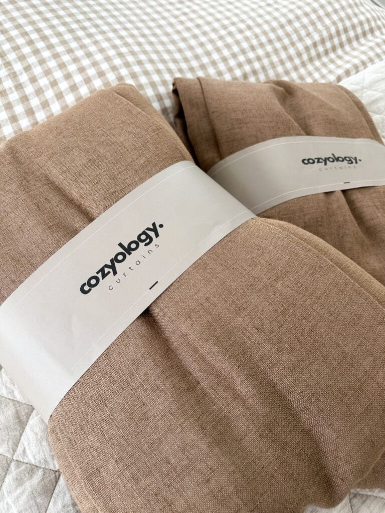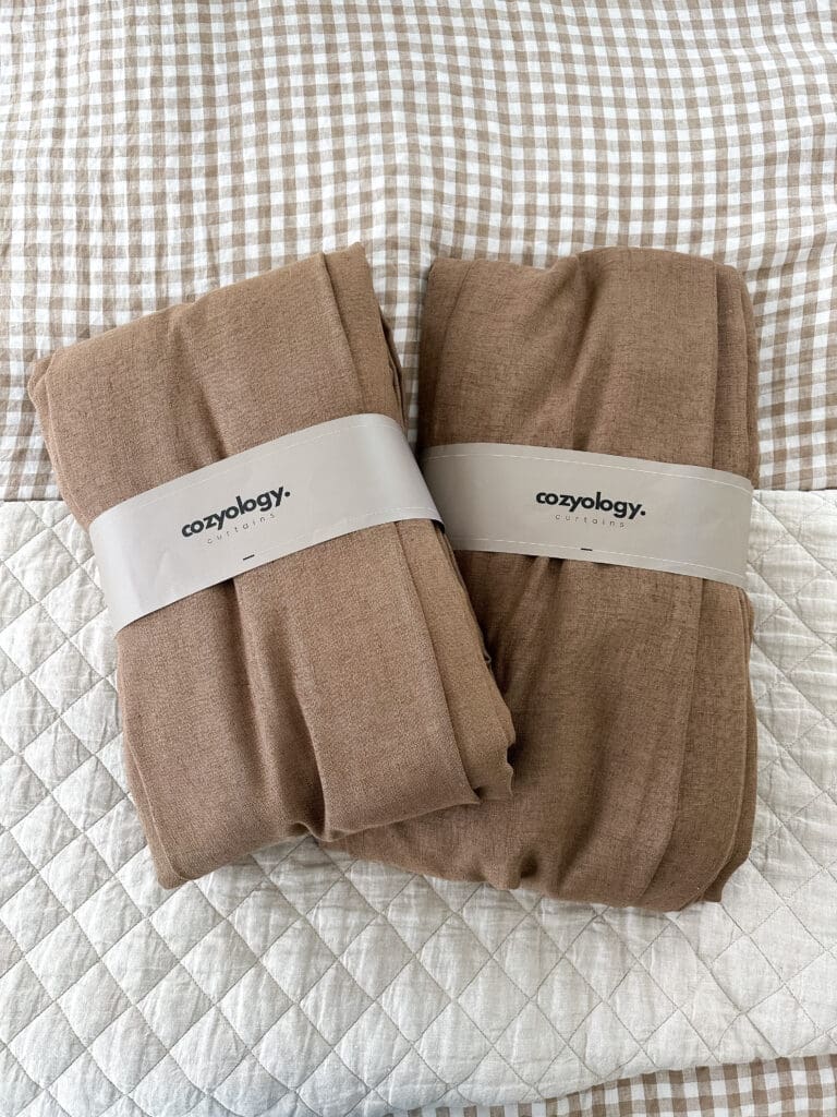 We also opted for partially blackout lining, which has been amazing for winter mornings. Cozyology offers several custom backing options, allowing you to choose how transparent you want your curtains to be. A heavier blackout can not only help with better sleep, but even adds extra insulation during these freezing midwest winters. Between the weight of the fabric and the lining, the bedroom stays noticeably warmer and so much cozier. And if chocolate brown isn’t your color, they have tons of options. Truly every room, style, and mood could find a match. I spent way too long scrolling swatches because they were all so good.