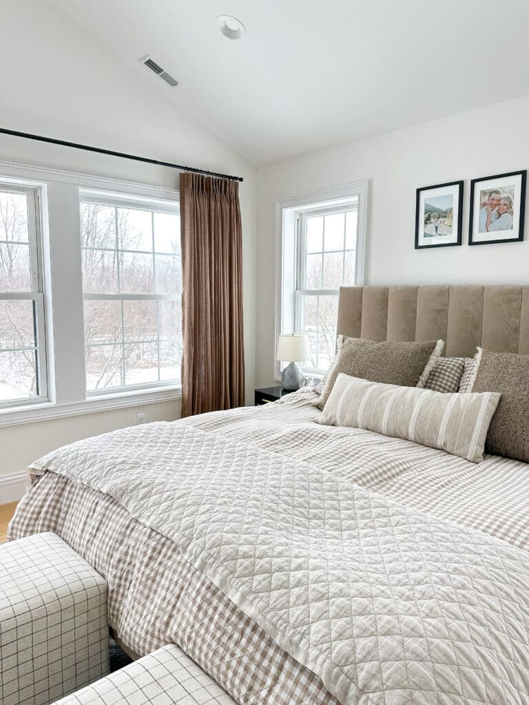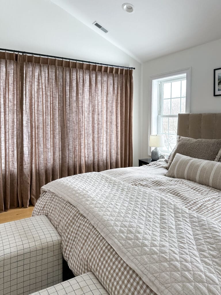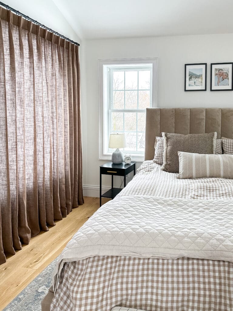 Every year when winter creeps in, our bedroom becomes the place we crave most; a space to unwind, recharge, and escape the cold Michigan air. But this year something felt… unfinished. The room is bright and airy which we love, but it lacked the warmth and coziness that winter practically begs for. That’s when we decided it was time to bring in a little seasonal softness, and Cozyology’s Cloud Cotton Lightweight Pleated Drapery in Chocolate Brown turned out to be the exact finishing touch we didn’t know we needed.